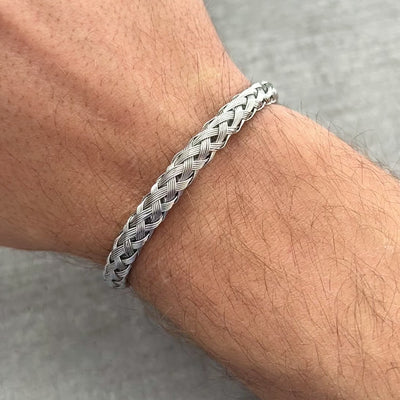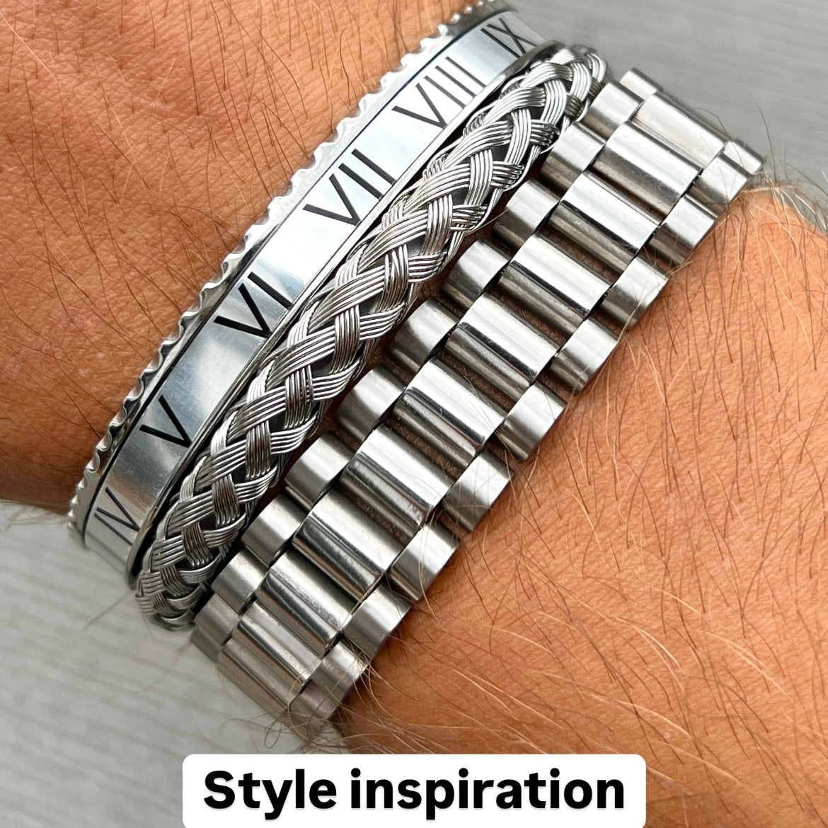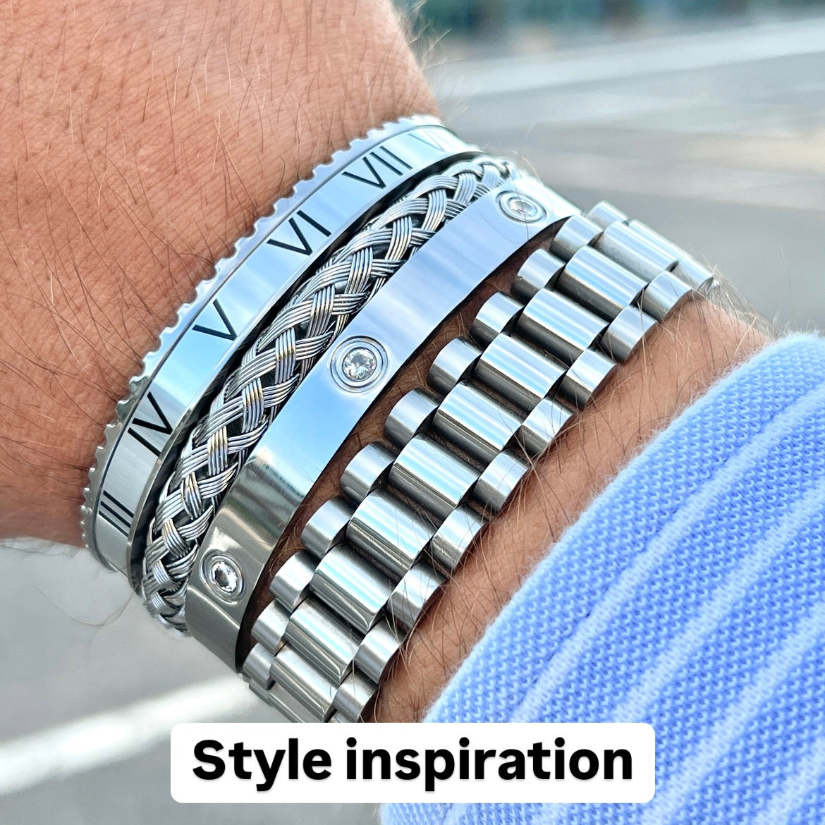The Titan bangle is made of premium quality stainless steel. Flexible design that fits perfectly to your wrist. Size fits all wrists from 17-22cm.