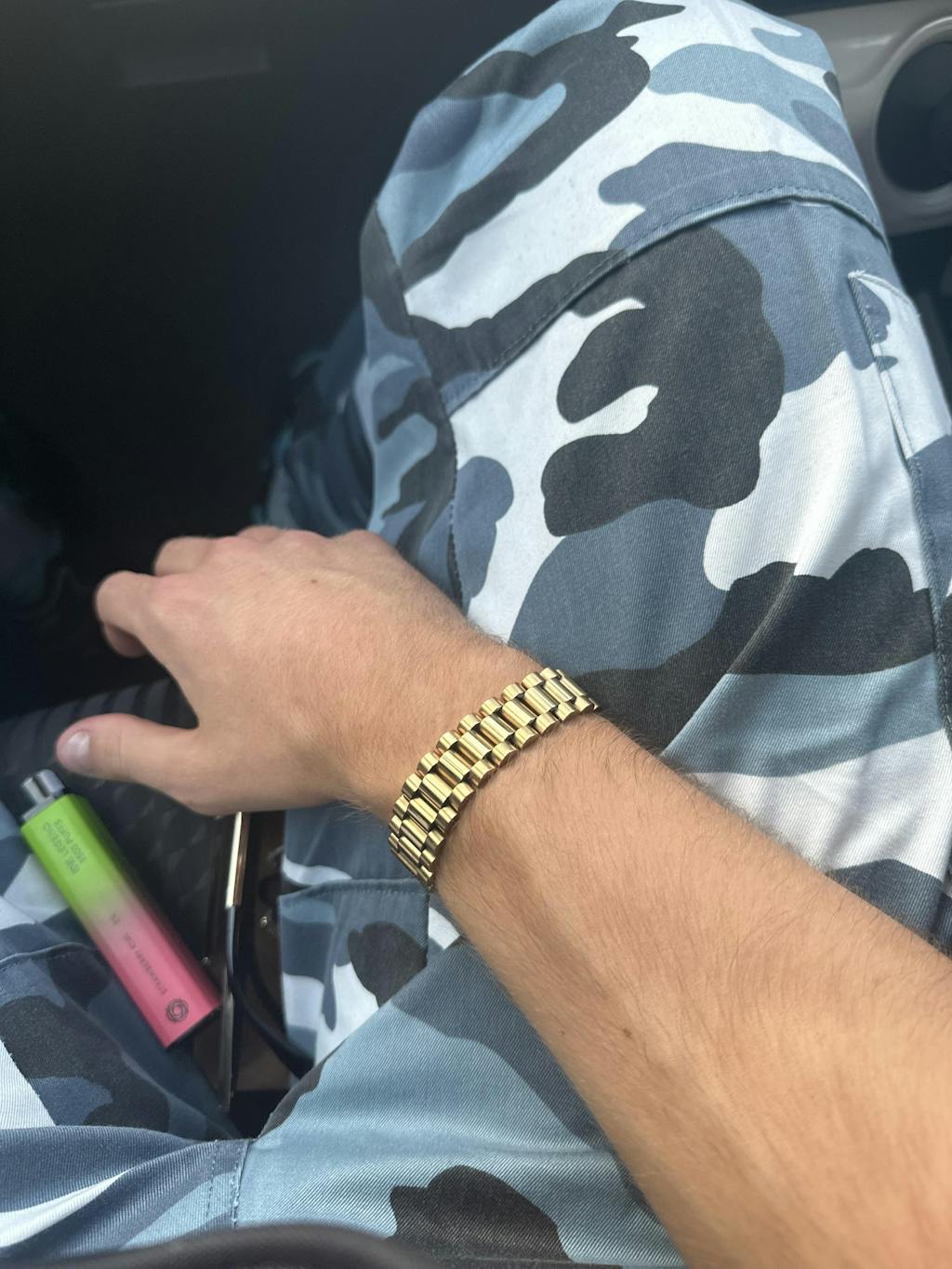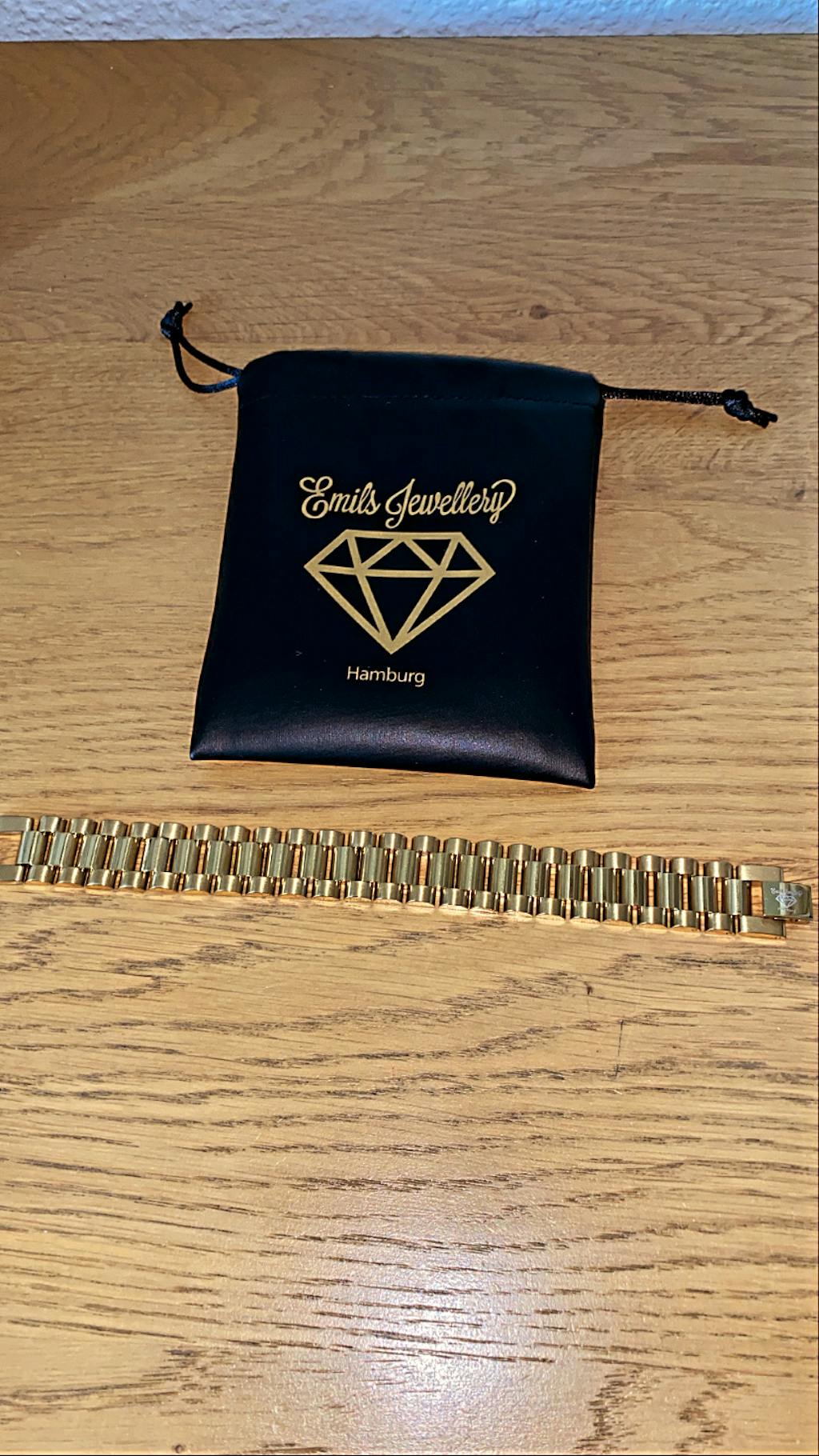 The gold president bracelet is made of stainless steel and super high quality 18k gold plating, so it's 100% water and sweat proofed and will never tarnish. The cool design and the 18k gold plating make this piece so special and you will never go unnoticed with it.